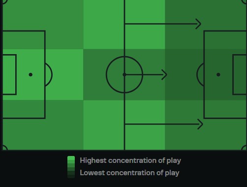 - Often bypassed midfield, relying on long balls and quick one-twos.